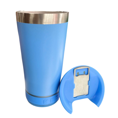 Personalizado - Bluetooth - Copo Térmico Som Led e TAMPA com ABRIDOR (420 ml) - Azul Claro/H