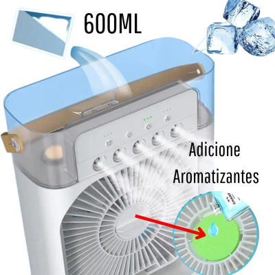 Ventilador Portátil grande de mesa Umidificador Climatizador Led Água e Gelo 3 Velocidades Led/F