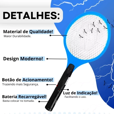 Raquete Mata Mosquitos Elétrica Luminária Armadilha Luz Uv;F